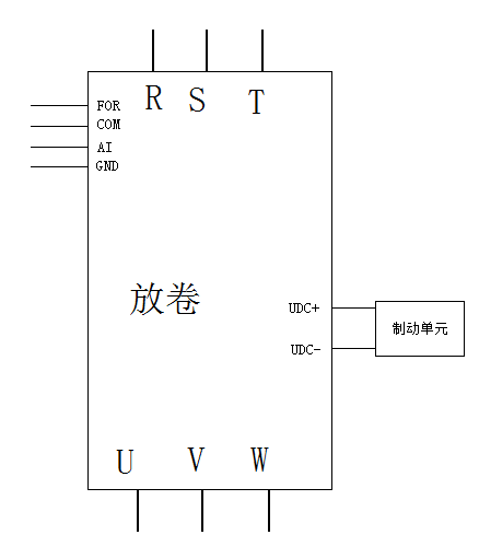 - 放卷變頻器采用開環轉矩控製,電機處於發電狀態,必需接製動單元,並且與收卷變頻器共直流母線;